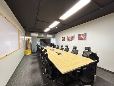 Work Aura offers a fully equipped boardroom designed for productivity and collaboration.