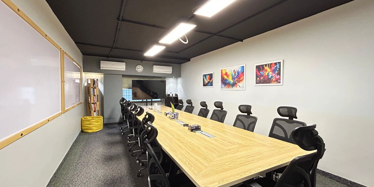 Work Aura offers a fully equipped boardroom designed for productivity and collaboration.